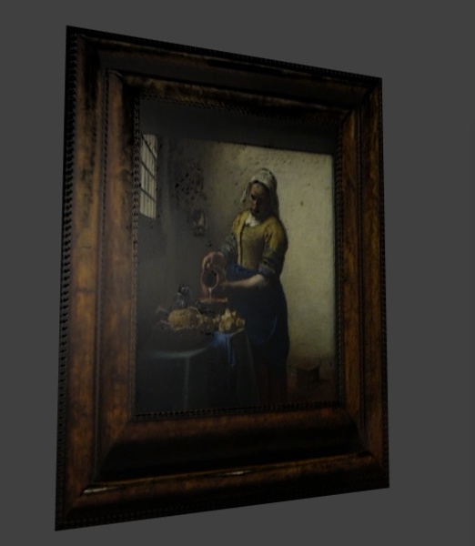 『福岡伸一のフェルメール 光の王国展 2015 - 彼は画家ではなく科学者だった。 フェルメールの秘密を解き明かす世界初のリ・クリエイト*絵画展』が開催されているというので、特殊カメラをリュックに入れて東京日本橋に行き、特殊撮影・VR復元してみました。その一例、たとえばMilkmaid(牛乳を注ぐ女)を眺めてみた例がこちらです。(しまった!画像を反転させちゃった)