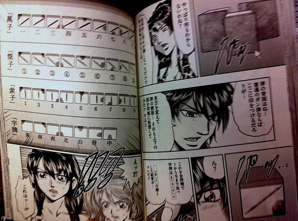 麻雀マンガ「バード」第2巻「雀界天使vs天才魔術師編」で、主人公の対戦相手である雀界天使 美人姉妹が、麻雀牌の背面(白い無模様の側)に「反射光が偏光するような塗料」で模様を付けておき・相手の麻雀牌の手を透視してしまう!というワザを使っていました。